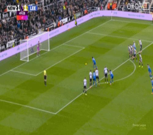 第54分钟,吉马良斯传中,乔林顿甩头攻门扳平比分,纽卡2-2利兹联